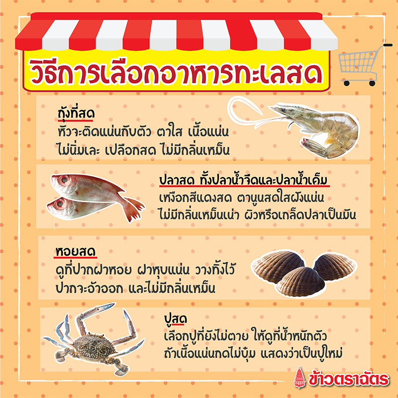 4. การเลือกซื้ออาหารสด ปลา/กุ้ง/หอย/ปู/ปลาหมึก